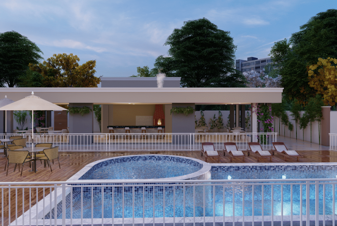 O lazer é completo e pensado para todas as idades. Piscina adulto com solarium, piscina infantil, salão de festas com churrasqueira, playground, área de convivência com pergolado e espaços planejados para criar momentos especiais em família. Mais do que áreas comuns, o New Life entrega cenários para celebrar conquistas e construir memórias.